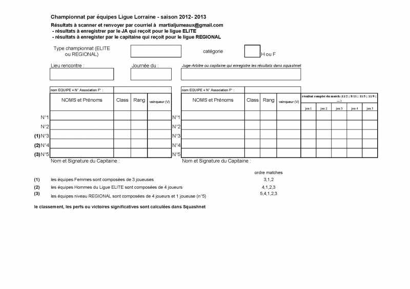 Feuille rencontre championnat